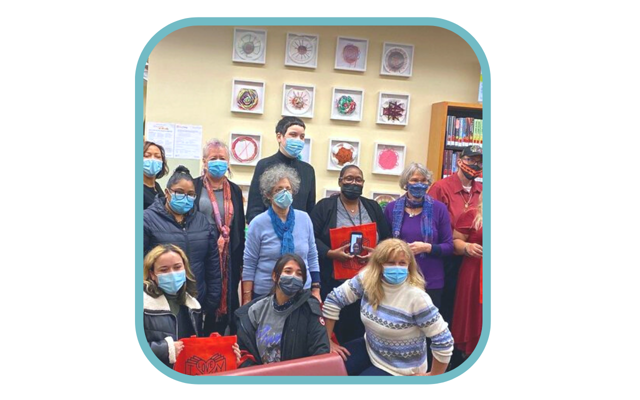 Visitors to the Baychester Public Library in the Bronx were treated to a colorful display of circle weavings, courtesy of our collaboration with AHRC NYC . The weavings on view were created between 2020 and 2021 over zoom, facilitated by Intertwine Arts teaching artists.