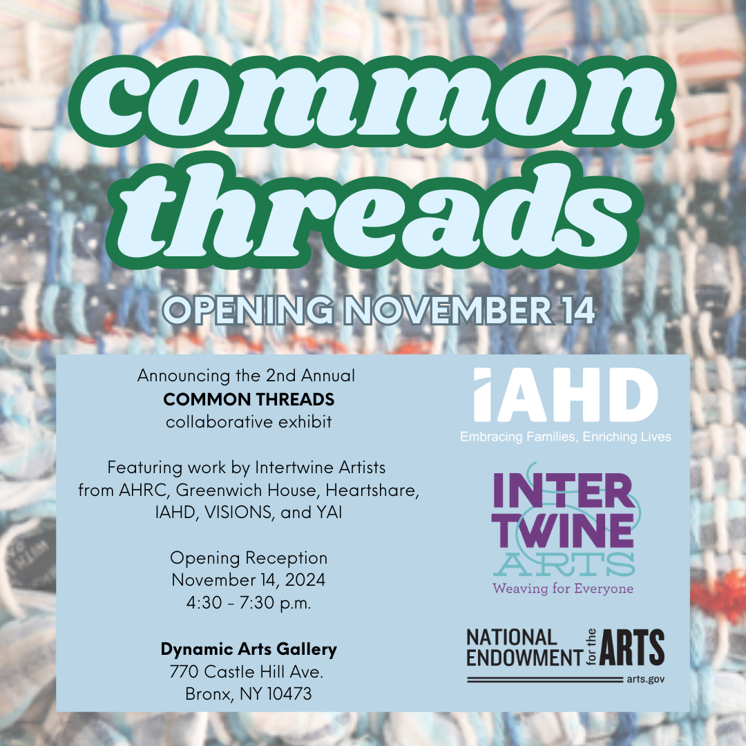 With collaborative efforts from iAHD and Intertwine Arts, exquisite works were created by artists with disabilities for this fiber arts show. Hosted by Dynamic Arts Gallery in the Bronx and curated by Johnny Mattei & Ori-Ann Dryden, this exhibit ran from May through July 2022.