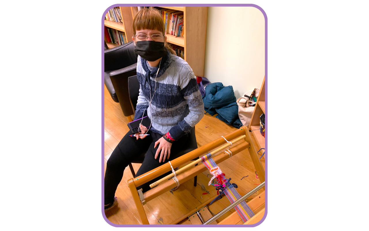 Intertwine Arts facilitates a weekly circle weaving Zoom workshop with adults with disabilities, as well as in-person programs on floor looms at AHRC facilities across the city. Many beautiful woven artworks have been transformed into dolls, pillows, hats, and more!